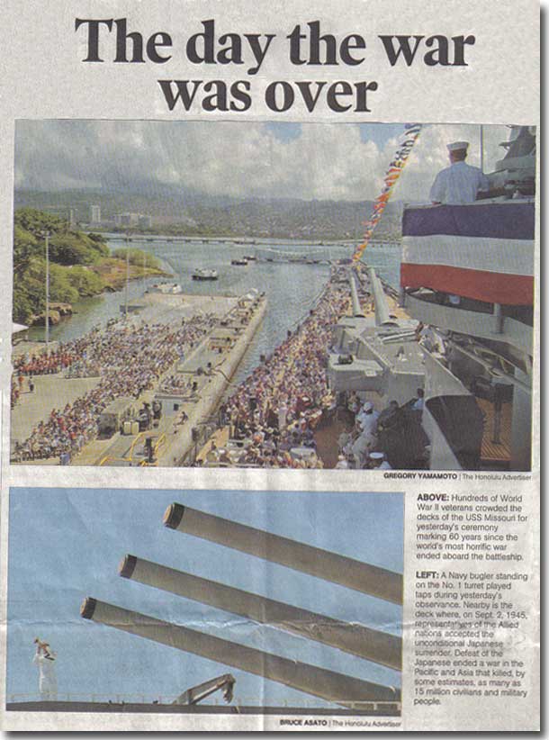 The Honolulu Advertiser covers the Anniversary of the signing of the Japanese Surrender on the 2nd of September 2005