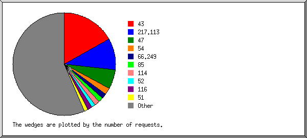 Listing the top 20 organizations by the number of requests, sorted by the number of requests.